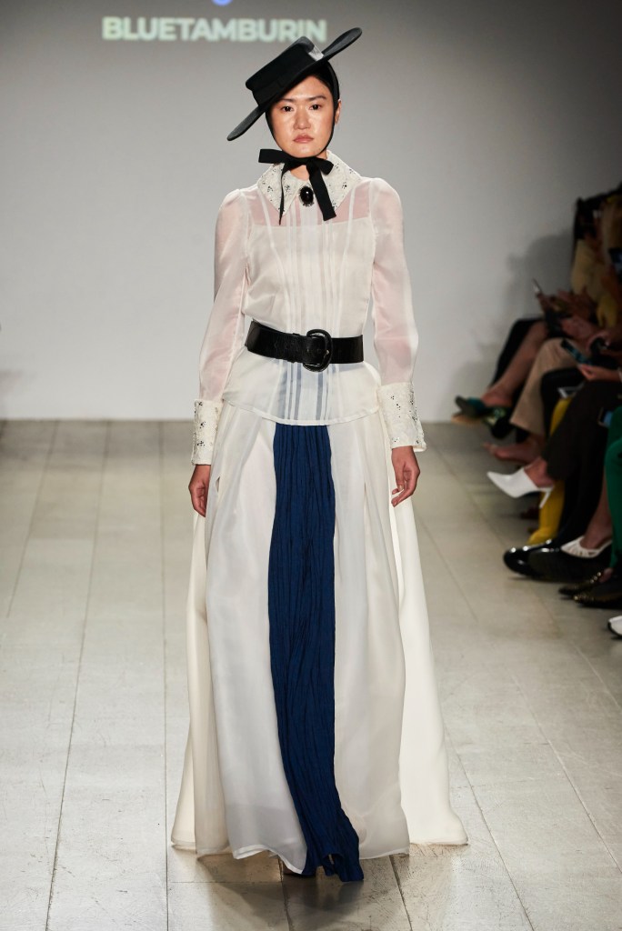 김보민 Bomin Kim, designer for 블루템버린 BlueTamburin, leverages fashion’s ability to have a ‘good influence’ on society. She says, “fashion touches all fields of society: art and culture, politics and philosophy, science and technology, society and commerce. I think this is the biggest charm and power of fashion. What is important to me is how much ‘good influence’ you have on society through fashion. I want to make people beautiful and the world beautiful through good influence.”
