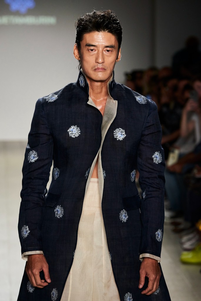 Beauty, along with a socially positive outlook, is at the core of Kim’s designs and the focus of the BlueTamburin brand, hence the slogan,“ Beautiful People Beautiful Lives”. The brand, helmed by a partnership of two, aims to become a socially positive brand, influencing and uplifting the “value of people’s lives and society”. 이건호 Gunho Lee, the other half of the partnership, is the CEO who heads up the publicity and operations side of the brand. The paring of Kim and Lee are unique given her creative background and Lee’s military and corporate career. Lee was a military officer, part-leader of the corporate planning office of one of the top 10 companies in Korea, and aide to the Korean National Assembly. The common ground of fashion’s positive influence on society is their mission. And their name is quite fitting. Lee describes the name, BlueTamburin, “like the double meaning of blue, it contains the meaning of wanting to make people happy, like the tambourine (tamburin), a pleasant instrument that anyone can easily play, whether happy or sometimes gloomy.”