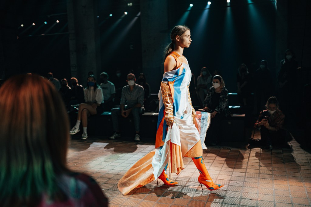 Feature Image: BERLIN, GERMANY – SEPTEMBER 08: A model walks the runway wearing Damian Ohl from Weißensee Kunsthochschule Berlin during the Neo.Fashion. Best Graduates Show at the Mercedes-Benz Fashion Week Berlin September 2021 at Kraftwerk Mitte on September 08, 2021 in Berlin, Germany. (Photo by PR/Stefan Knauer/Getty Images for Nowadays)