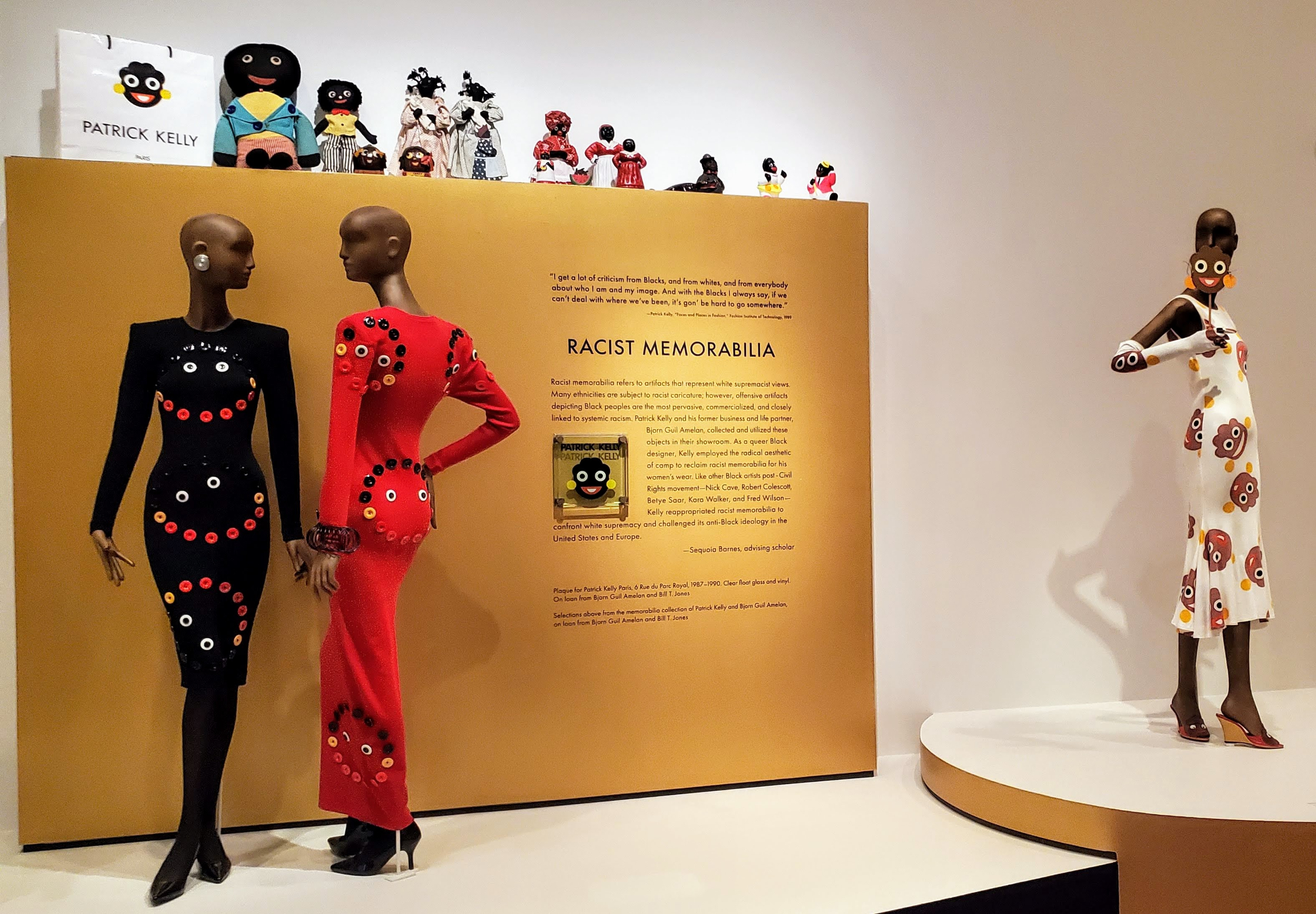 Kelly strategically repurposed racist imagery to call it out, to flip the script, to own the narrative of American society’s demonic social practices, to expose the American culture for what it really was during the segregated times of the legal mandate known as Jim Crow (post-Civil War to 1968). “Only Patrick Kelly in his day could appropriate the stereotypical racist memes of such cultural images and make them real”, said André Leon Talley.¹