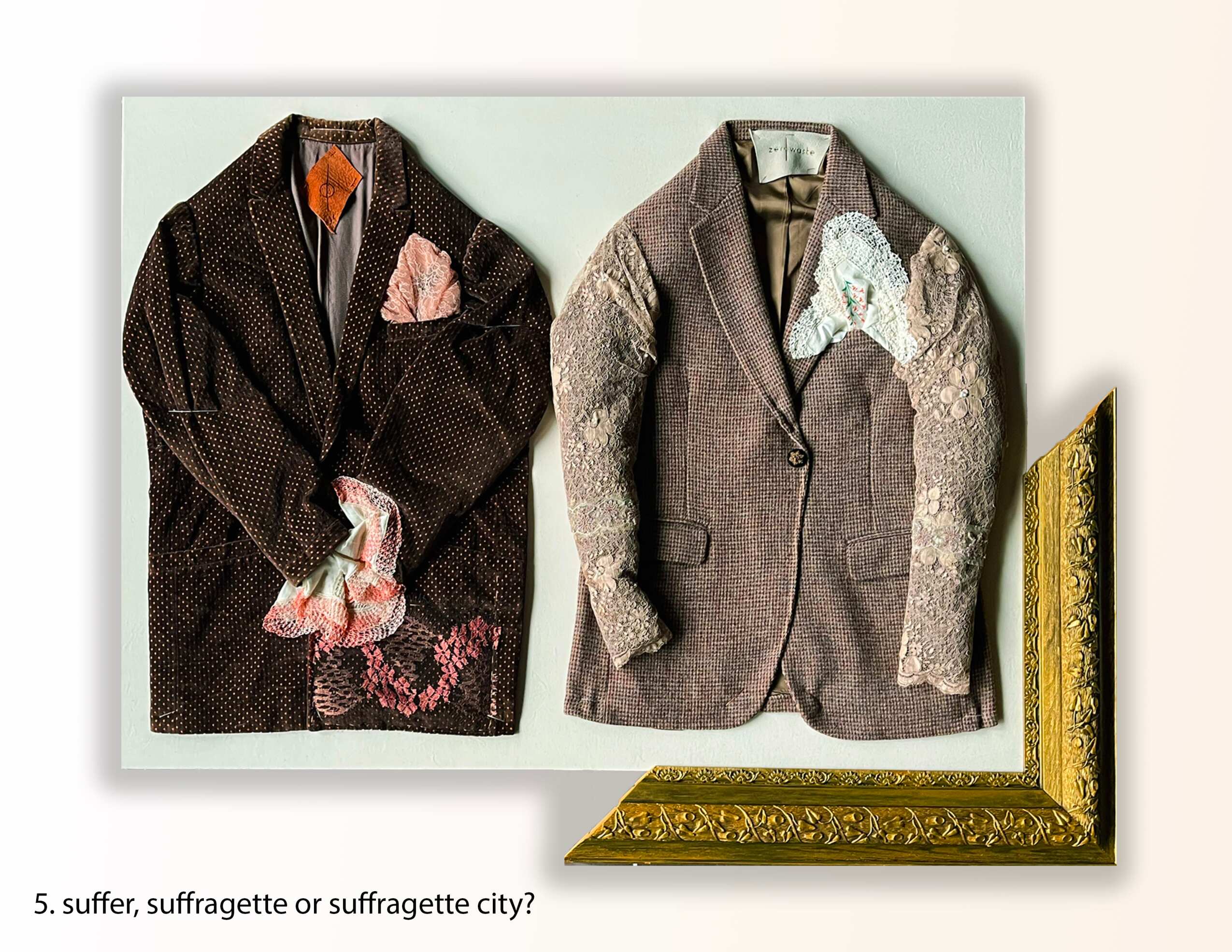 In textiles, bias is the diagonal of woven fabric. Apparel is cut on the bias to achieve, and historically assign, feminine fluidity. Critical gender assignment in fashion apparel is defined in jackets by the cut, shape and size of shoulders in menswear. This applies to the waist in womenswear. There is no bias cutting in this body of work. The gender bias in the garments were transformed to express both the feminine and the masculine.