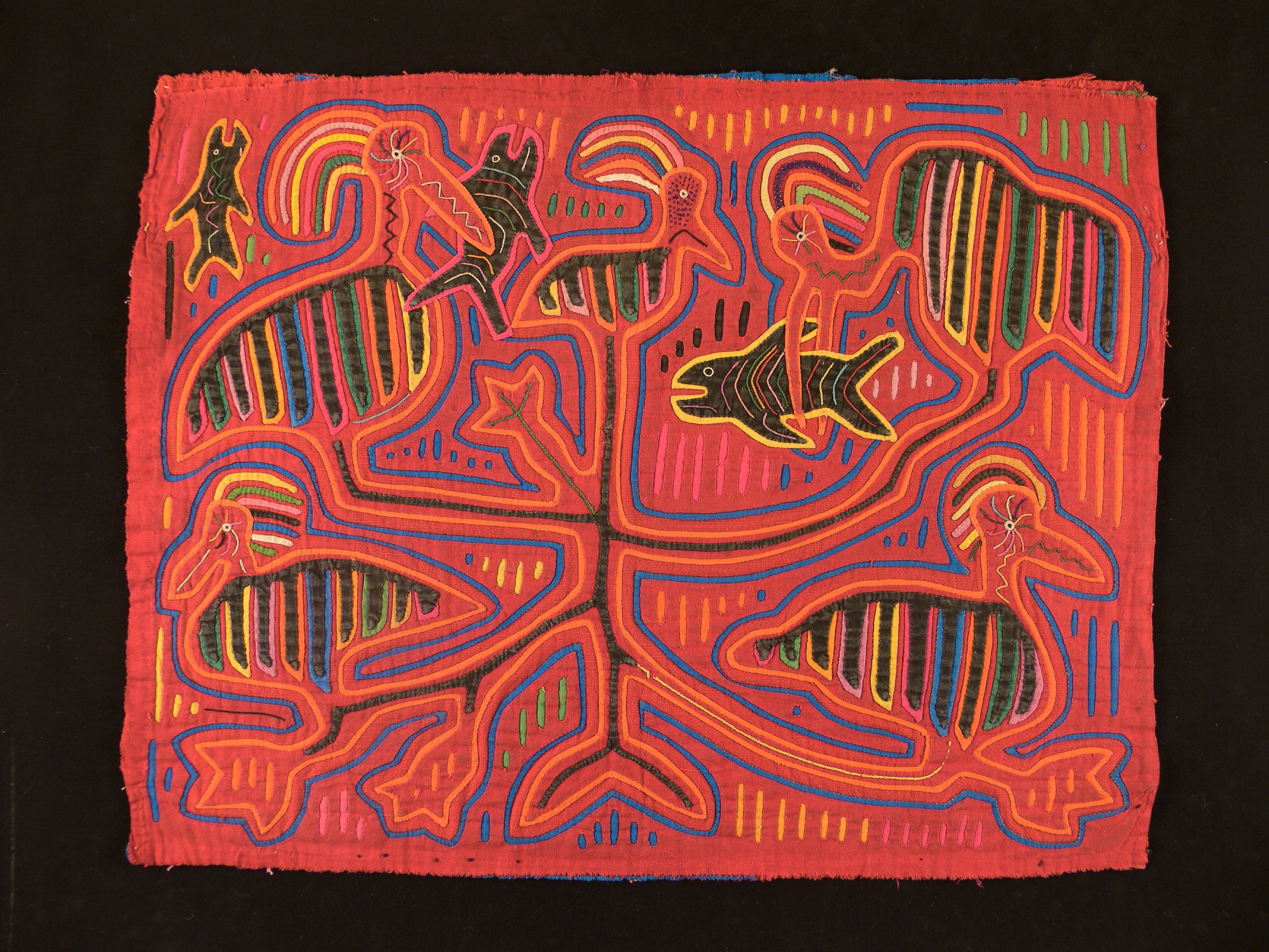 Many of the exhibition pieces, a range of ethnographic garments and textiles from the Jo Ann C. Stabb Collection at the University of California Davis, USA, express global identities as well as our cultural regard for animals. There are depictions of complex ideas, illustrations of the origins of computing in weaving, and the antiquity of the principle of ‘waste not want not’.