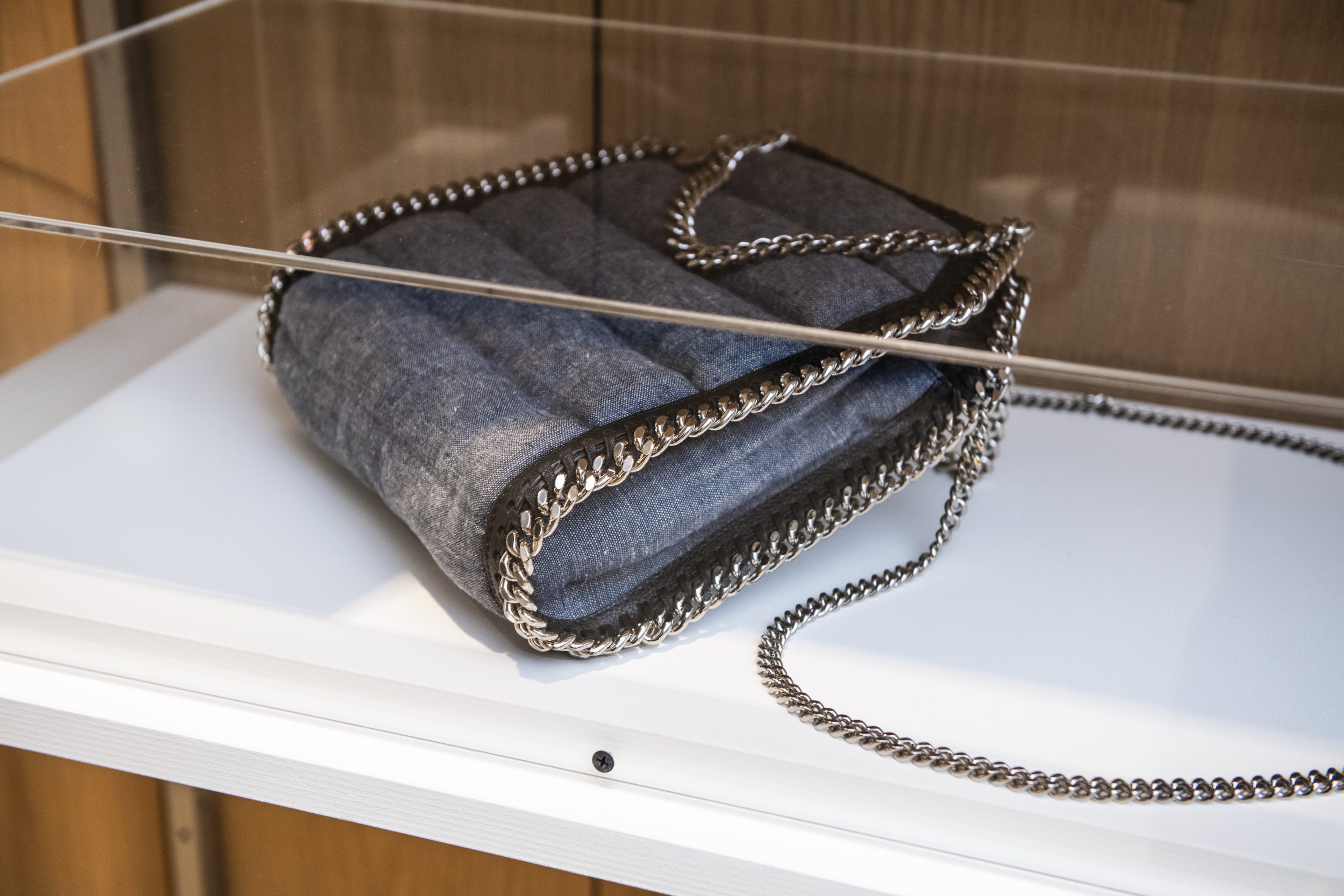 Falabella bag with BioPuff padding, by Stella McCartney in partnership with Ponda, in Tomorrow’s Wardrobe. Photography by Aaron Parsons for the Design Museum.