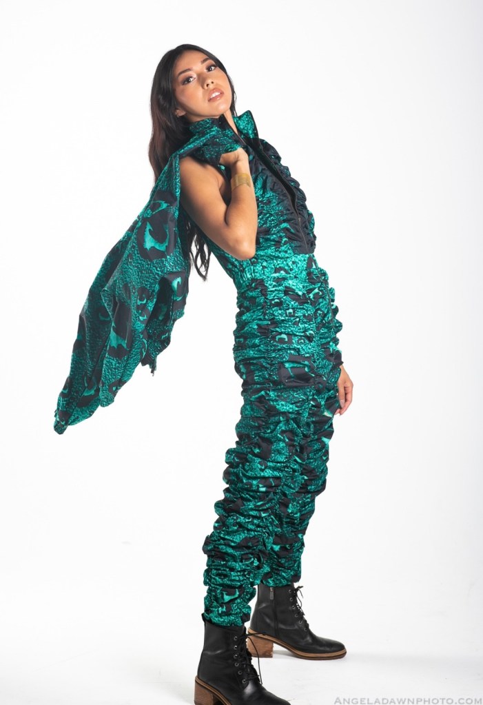 Born in Portland, Oregon, Bearghost, in 2013, pursued her aspirations and established No End Of (NEO), a contemporary traditional design streetwear clothing company. In tribute to her heritage, she creates Native-designed fashion intended for all, collaborating with Indigenous artisans both on “Turtle Island” and in Bali, Indonesia.