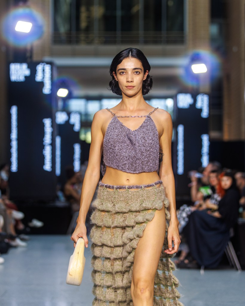 For her collection, But Even Storms Pass, Amelie Vaupel uses knitting as her core design language. Her work is an intensely personal exploration of social anxiety, capturing the inner conflict of feeling overwhelmed and withdrawn while still having the desire to be seen.